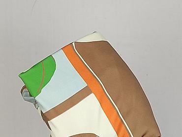 - Kolorystyka i wzór: wielobarwny nadruk w odcieniach zieleni, pomarańczu, błękitu, beżu i ecru; graficzne, retro inspirowane motywy