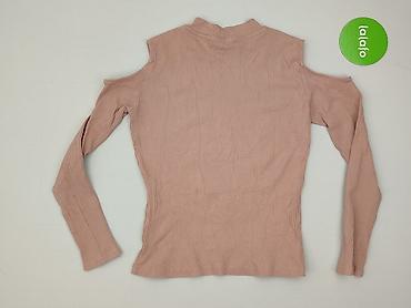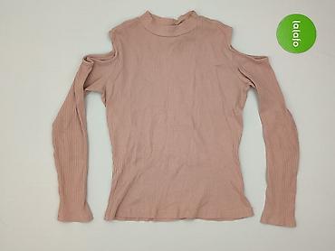 Bluzka z prążkowanej dzianiny, kolor pudrowy róż. - Krój dopasowany, długi rękaw - Asymetryczny dekolt z wycięciem na jedno ramię (cold shoulder) - Niski golf/stójka - Miękka, elastyczna tkanin...Rozmiar: