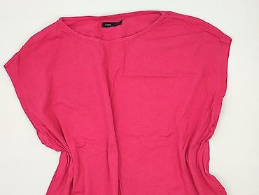 Bluzka damska z krótkim rękawem, różowa/fuksja. - Fason: luźny, lekko rozkloszowany dół, odcięcie pod biustem z delikatnym marszczeniem - Dekolt: szeroki, okrągły - Zapięcie: krótka listwa z 5 dek...