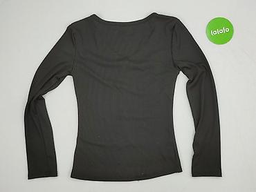 Czarna dopasowana bluzka damska z długim rękawem. - Rozmiar: S - Fason: przylegający, elastyczny; delikatne prążkowanie materiału - Dekolt: półokrągły z ozdobnym przeszyciem/cięciem pod linią bius...