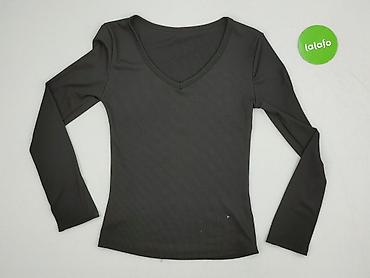 Czarna dopasowana bluzka damska z długim rękawem. - Rozmiar: S - Fason: przylegający, elastyczny; delikatne prążkowanie materiału - Dekolt: półokrągły z ozdobnym przeszyciem/cięciem pod linią bius...Rozmiar: