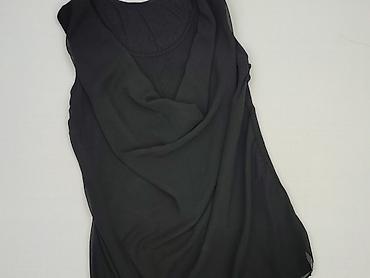 Czarna damska bluzka/top bez rękawów z koronką - Fason: luźny, bombka; delikatne zakładki z przodu - Tył: efektowne rozcięcie odsłaniające panel z czarnej koronki o kwiatowym wzorze - Dekolt: okrą...
