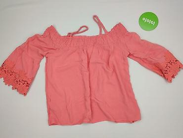 Bluzka damska BELOVED WOMAN, rozmiar EU 36 (ES 38). - Krój: hiszpanka (odsłonięte ramiona) z szeroką, falbaniastą listwą przy dekolcie - Wzór: pionowe paski w odcieniach koralowym i jasnoszarym na...