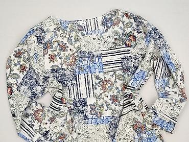 Bluzka damska Reserved - Marka: Reserved - Rozmiar: EU 36 (UK 8) - Fason: z długim rękawem, dekolt w szpic z listwą guzikową - Wzór: paisley/kwiatowy na białym tle, odcienie granatu, szarości i pu...