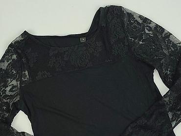 Bluzka damska z długim rękawem, czarna z koronkową wstawką - Fason: dopasowany, z okrągłym dekoltem - Rękaw: długi - Kolor: czarny; górna część (przód i tył) z białej, kwiatowej koronki - Materiał...