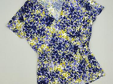 Bluzka damska z krótkim rękawem i dekoltem w serek. - Rozmiar z metki: 46 - Wzór: artystyczny, kwiatowy nadruk w odcieniach niebieskiego, zieleni, bieli, żółci i czerwieni (przód i tył) - Krój: ...