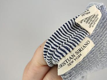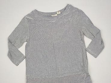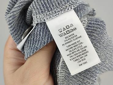 Bluzka damska w paski, rozmiar S. - Krój: dopasowany, dekolt w serek (V-neck) - Rękawy: 3/4 - Wzór: biało-granatowe, wąskie poziome paski - Materiał: prążkowana dzianina elastyczna – 58% poliester...