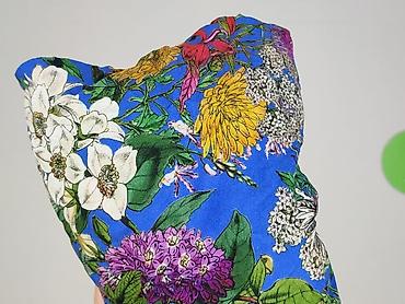 - Wzór: intensywny, kwiatowy nadruk na kobaltowo‑niebieskim tle (różnorodne kwiaty w odcieniach bieli, żółci, fioletu, czerwieni i zieleni)