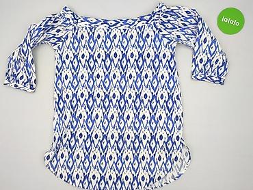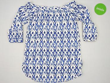 Damska bluzka z długim rękawem, rozmiar EUR 38 (US/CA 8). - Wzór: kwiatowy, akwarelowe niebieskie motywy na białym tle. - Krój: lekko taliowana, dekolt w kształcie V. - Materiał: cienka, zwiewna t...