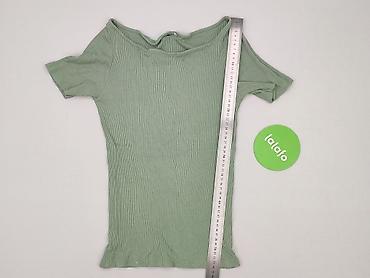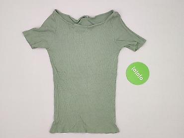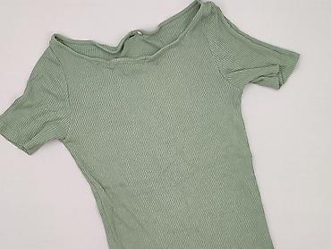 Zielona damska bluzka z krótkim rękawem - Fason: dopasowany, elastyczny - Dekolt: głęboki okrągły - Rękawy: do łokcia/krótsze - Materiał: miękka, cienka dzianina z domieszką elastanu (rozciągliwa ...Rozmiar: