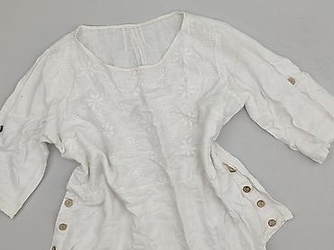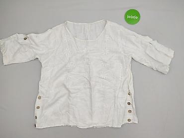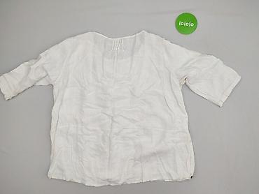Biała bluzka damska z dekoltem w serek, rozmiar L. - Krój: luźny, z krótkimi, opadającymi rękawkami (kimono/cap sleeve) - Materiał: 84% wiskoza, 16% len – lekka, przewiewna tkanina o delikatnej, f...