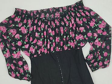 Bluzka hiszpanka w kwiaty - Krój: krótka, odsłaniająca ramiona (off-shoulder), dzięki elastycznej gumce wokół dekoltu i dołu można nosić ją prosto lub lekko opuszczoną. - Rękawy: długie, lekko buf...