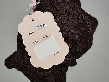 Bluzka damska z długim rękawem, rozmiar S. - Krój: prosta linia, lekko bufiaste rękawy. - Dekolt: szeroki, zdobiony koronkowymi aplikacjami-kwiatami na obu ramionach. - Wzór: beżowo-czarny, geomet...