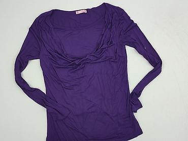 Fioletowa bluzka damska z długim rękawem - Krój: kopertowy przód z miękkimi marszczeniami, dopasowany dół - Tył: półokrągły dekolt z małym trójkątnym wycięciem pod karkiem - Rękawy: długie - Mater...