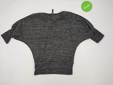 Damska bluzka z połyskiem – rozmiar S - Fason: dopasowany, długi rękaw, stójka; z tyłu zapięcie na mały guzik - Kolor: grafitowy/czarny z drobnym metalicznym połyskiem (brokatowa nić) - Materiał: ...