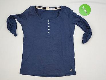 Bluzka damska z długim rękawem, rozmiar L. - Kolor: granatowy/niebieski - Fason: klasyczny, prosty krój - Dekolt: w kształcie litery V - Rękawy: długie - Materiał: miękka, cienka dzianina bawełnia...