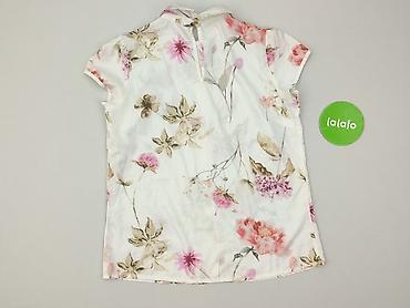 Damska bluzka w drobny kwiatowy wzór - Kolor: biel w czarne, drobne kwiaty - Krój: dopasowany, lekko taliowany - Rękaw: krótki, z delikatnie przedłużonym ramieniem (cap sleeve) - Dekolt: okrągły z...Rozmiar: