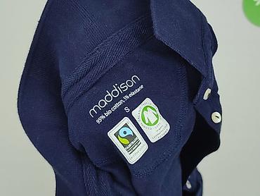 Bluzka damska Madex, rozmiar 36 - Fason: luźna bluzka z długim rękawem, okrągły dekolt - Wzór: granatowo-białe motywy w kształcie koniczyny/rozetek na całej powierzchni - Rękawy i dół zakończone g...Rozmiar: