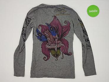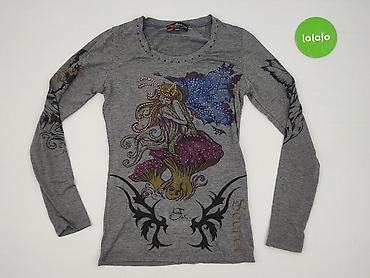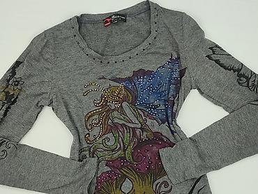Bluzka damska Latynka S/M - Kolor: czarny - Rozmiar z metki: S/M - Fason: luźniejszy, z opadającą linią ramion - Rękaw: 3/4 - Dekolt: łódka - Przód: duży nadruk z motywem dżinsów i perełek - Tył: ...