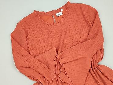 Koronkowa bluzka damska KD, rozmiar 44, produkt polski. - Kolor: intensywny koral/czerwony - Materiał: 100% poliester (lekka, ażurowa koronka z kwiatowym wzorem) - Krój: luźniejszy, zebrany delika...Stan: