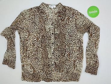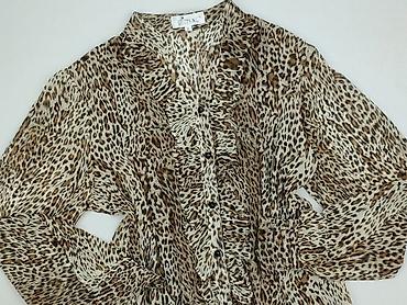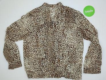 Bluzka damska Estelle, rozmiar XL - Wzór: panterka (animal print) w odcieniach beżu, brązu i czerni - Krój: prosta linia, długie rozszerzane rękawy - Dekolt: okrągły z małym łezkowym wycięciem wyk...