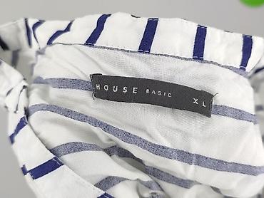 Damska bluzka WOMEN, rozmiar 42 - Krój: lekko wydłużony tył, okrągły dekolt, długie rękawy z delikatnym marszczeniem przy mankietach - Wzór: jasnoniebieskie, wąskie paski + kwiatowy nadruk w odcie...