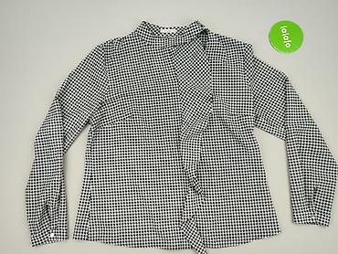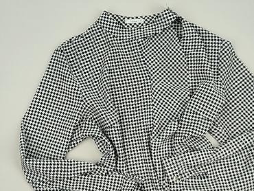 Bluzka damska z długim rękawem, wzór drobnej pepitki (czarno-biała). - Fason: luźny, lekko opadający - Dekolt: w kształcie litery V, kontrastowa czarna lamówka - Rękawy: długie, lekko bufiaste z s...