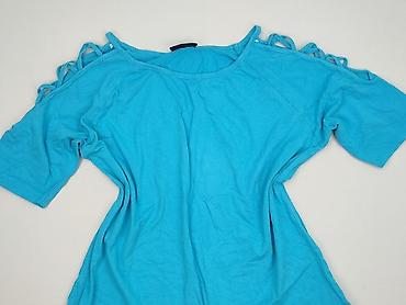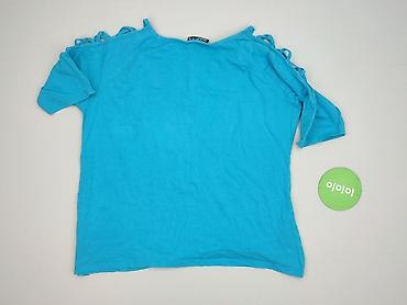Bluzka damska Janina - Kolor: jasny turkus/niebieski - Krój: bluzka z krótkim rękawem, luźniejsza góra z marszczeniami - Dekolt: szeroki, okrągły z elastyczną gumką – można nosić klasycznie lub le...