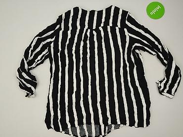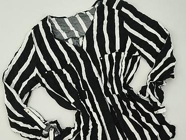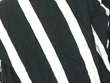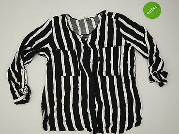 Bluzka damska w paski, rozmiar 40. - Krój: luźniejszy, z dekoltem V zapinanym na dwa złote guziki z przodu - Rękawy długie, mankiety zapinane na guziki - Wzór: pionowe pasy w kolorach bieli, czern...