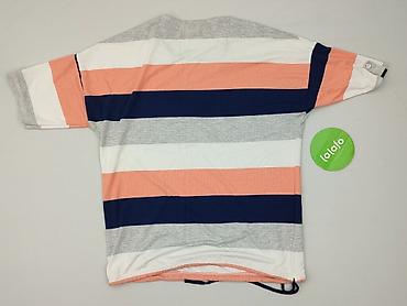 Bluzka damska w paski, rozmiar XL - Fason: luźny, prosty krój z opuszczonym rękawkiem typu cap - Dekolt: okrągły - Wzór: granatowo-białe, drobne poziome paski - Kolorystyka: górna część gładka bia...