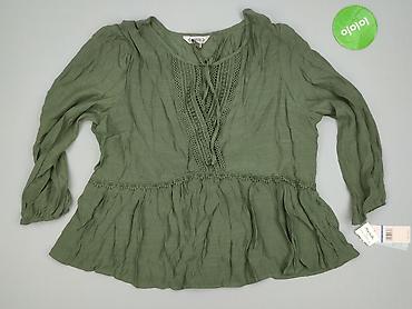 Bluzka damska z długim rękawem, w kolorze zgaszonej zieleni (khaki/szałwia). Luźny krój z dekoltem w szpic zapinanym na krótki rozpinany plastron. Ozdobne wykończenia z cekinami w kolorze szampańsk...Rozmiar: