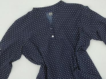 Bluzka damska MOUS, rozmiar S/M - Wzór: duże i małe grochy na granatowym tle - Fason: luźny, z dekoltem w serek; rękaw 3/4 - Materiał: 50% wiskoza, 46% poliester, 4% elastan – tkanina miękka, lekko...