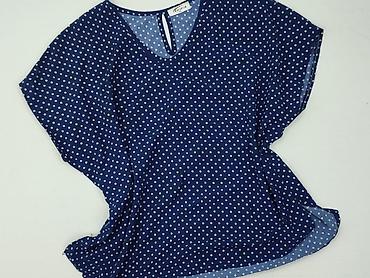 Bluzka damska LAVINIA, rozmiar 44 - Kolor: granatowy w białe grochy (polka dots) - Krój: luźniejszy, prosty, lekko wydłużony dół - Dekolt: w kształcie litery V z delikatną stójką/zakładką - Rękawy...Rozmiar:
