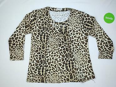 Bluzka damska Estelle, rozmiar XL - Wzór: panterka (animal print) w odcieniach beżu, brązu i czerni - Krój: prosta linia, długie rozszerzane rękawy - Dekolt: okrągły z małym łezkowym wycięciem wyk...Rozmiar: