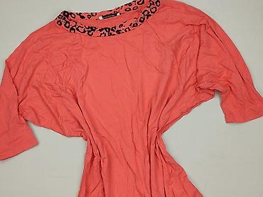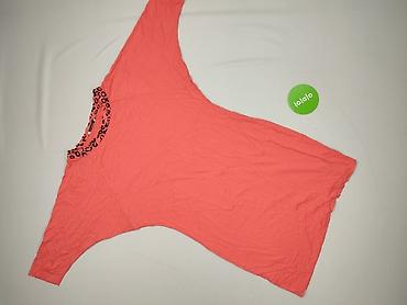 Bluzka damska w kolorze koralowym, rozmiar XL. - Krój luźny, komfortowy - Dekolt okrągły - Krótkie rękawy - Przód zdobiony aplikacją z drobnych dżetów układających się w promienisty wzór - Miękka, ...