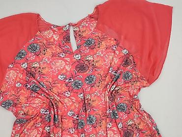 Bluzka damska Next - Model: luźna, lekko oversize, z krótkim rękawem typu kimono - Kolor: jasny pudrowy róż - Dekolt: okrągły z ozdobnym wycięciem z przodu; z tyłu łezka zapinana na guzik - Materi...