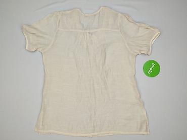 Bluzka damska, kremowa, z krótkim rękawem - Materiał: lekka, półprzezroczysta tkanina o miękkim chwycie (delikatnie lejąca), lamowane wykończenia. - Krój: luźniejszy, prosty, z obniżoną linią rami...