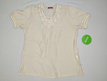 Bluzka damska TYS, rozmiar XL - Kolor: ecru/kremowy - Materiał: 100% bawełna (metka na zdjęciach) - Krótki rękaw - Dekolt w kształcie litery V - Ozdobne hafty przy dekolcie z połyskującymi aplikac...