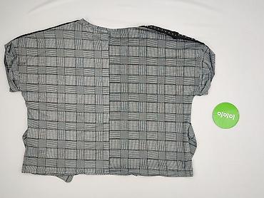 Bluzka damska w pepitkę (czarno‑biała), rozmiar EU XL (175/116A). - Krój: prosty, z okrągłym dekoltem. - Rękawy: krótkie z delikatnym bufowaniem/przeszyciami nadającymi objętość. - Wzór: klasycz...