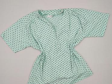 Bluzka damska w groszki - Kolor: pastelowa zieleń z białymi kropkami - Krój: kopertowy dekolt w serek z małą dekoracyjną kokardką z przodu; delikatnie taliowana; krótki rękaw typu cap - Materiał: ...