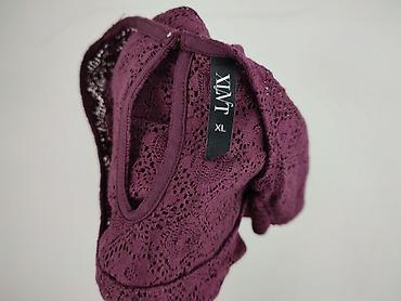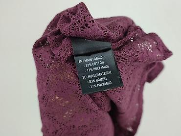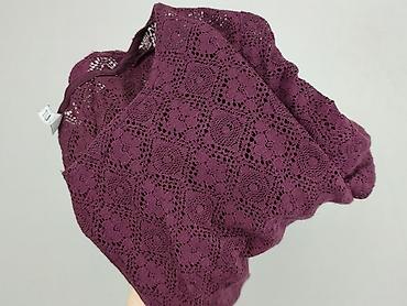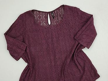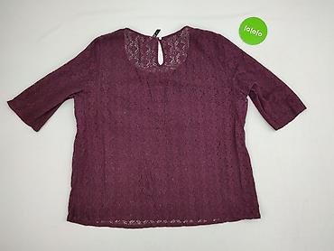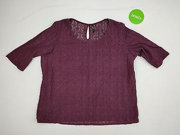 Ażurowa bluzka/kaftanik w kolorze bordowym. - Krój: luźny, z krótkim rękawem, okrągły dekolt - Materiał: 55% jedwab, 45% poliester (metka na zdjęciu) - Struktura: siateczkowa, delikatnie transpare...Rozmiar: