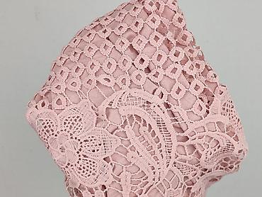 Bladoróżowa bluzka damska z koronką, rozmiar XS. - Fason: dopasowany, bez rękawów z delikatnymi falbankami na ramionach - Dekolt: półokrągły, ozdobiony efektowną, ażurową aplikacją koronkową w kwi...