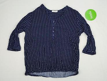 Bluzka damska MOUS, rozmiar S/M - Wzór: duże i małe grochy na granatowym tle - Fason: luźny, z dekoltem w serek; rękaw 3/4 - Materiał: 50% wiskoza, 46% poliester, 4% elastan – tkanina miękka, lekko...