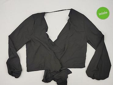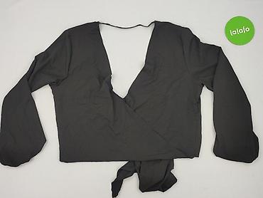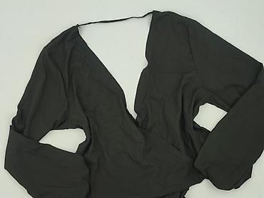 Czarna bluzka damska typu wrap (kopertowa) z długim rękawem.
