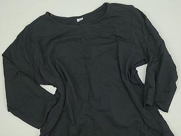Bluzka damska, czarna, rozmiar XL - Krój prosty, lekko luźny - Rękaw 3/4 - Okrągły dekolt z dekoracyjną zakładką z przodu, ozdobioną srebrzystym elementem przypominającym drobne cyrkonie - Delikat...