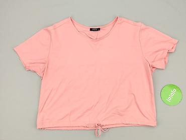 Bluzka damska Reserved, rozmiar XL, kolor jasny błękit. - Fason: dopasowana koszulka z okrągłym dekoltem - Rękawy: krótkie bufki z delikatnie marszczonej, półprzezroczystej tkaniny z subtelnym wzo...