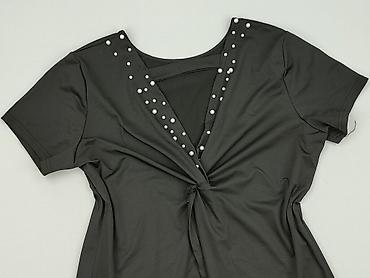 Czarna damska bluzka RENAI’S, rozmiar XL - Krój: dopasowany, z krótkim rękawem - Dekolt: V z efektownym, bogato zdobionym kołnierzem - Zdobienia: aplikacje z perełek w kilku rozmiarach, koronkowe ...