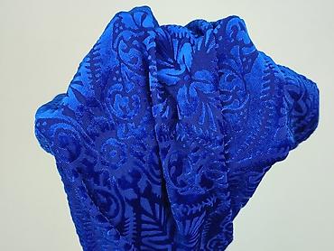 - Materiał: miękki, elastyczny welurowy żakard z połyskiem; bogaty, roślinno-ornamentowy wzór w odcieniach niebieskiego