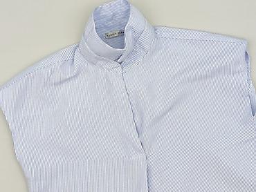 Koszula/bluzka damska Reserved - Rozmiar: EU 34 - Krój: prosta, z delikatnie marszczoną stójką - Wzór: drobne biało-niebieskie paski - Rękawy: długie, zakończone szerokimi mankietami do wiązania -...