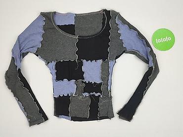 Bluzka damska z długim rękawem, rozmiar XL - Fason: klasyczna bluzka z okrągłym dekoltem, rękaw długi. - Wzór: geometryczny patchwork z motywami kwadratów; dominujące kolory: czerwień, czerń, gran...Stan: